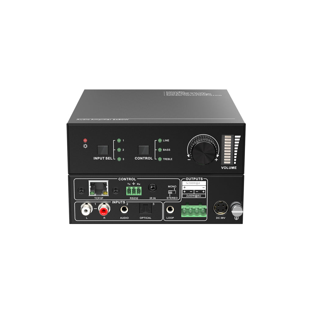 DVDO-AA2x50W-1 is a compact Class D stereo audio amplifier ideal for small to medium-sized AV environments, including classrooms, meeting rooms, small venues, bars, restaurants, and digital signage systems.