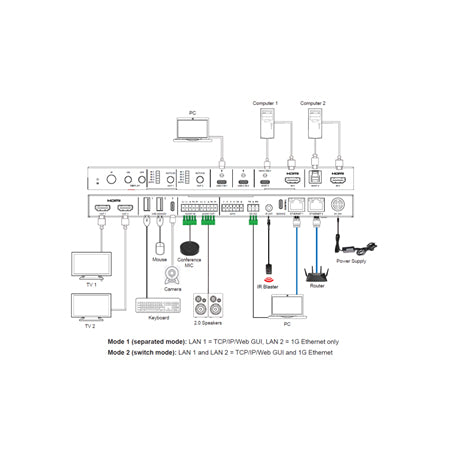 • 2 x HDMI + 2 x USB-C inputs & 2 HDMI outputs