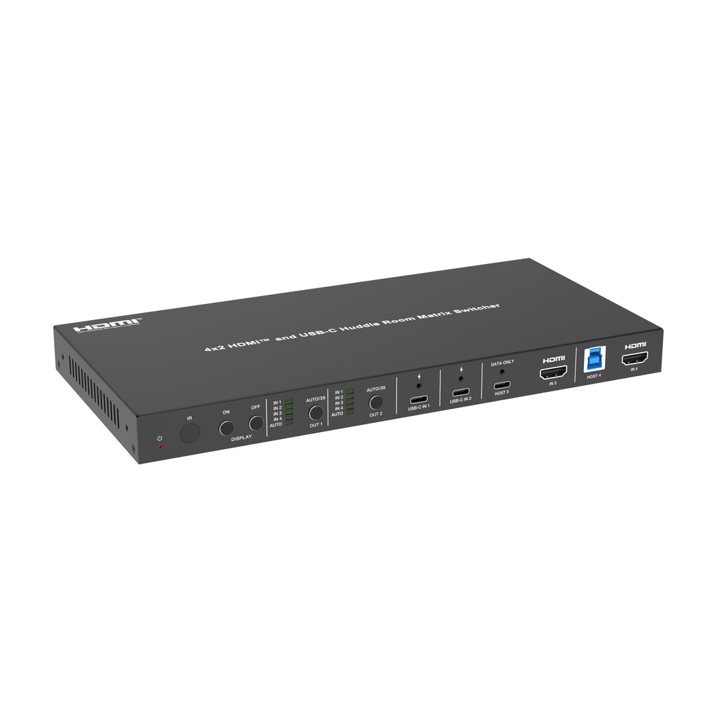 4K 4x2 Presentation Switcher with USB-C & HDMI Inputs, Audio Input & Output, 2 LAN Ports