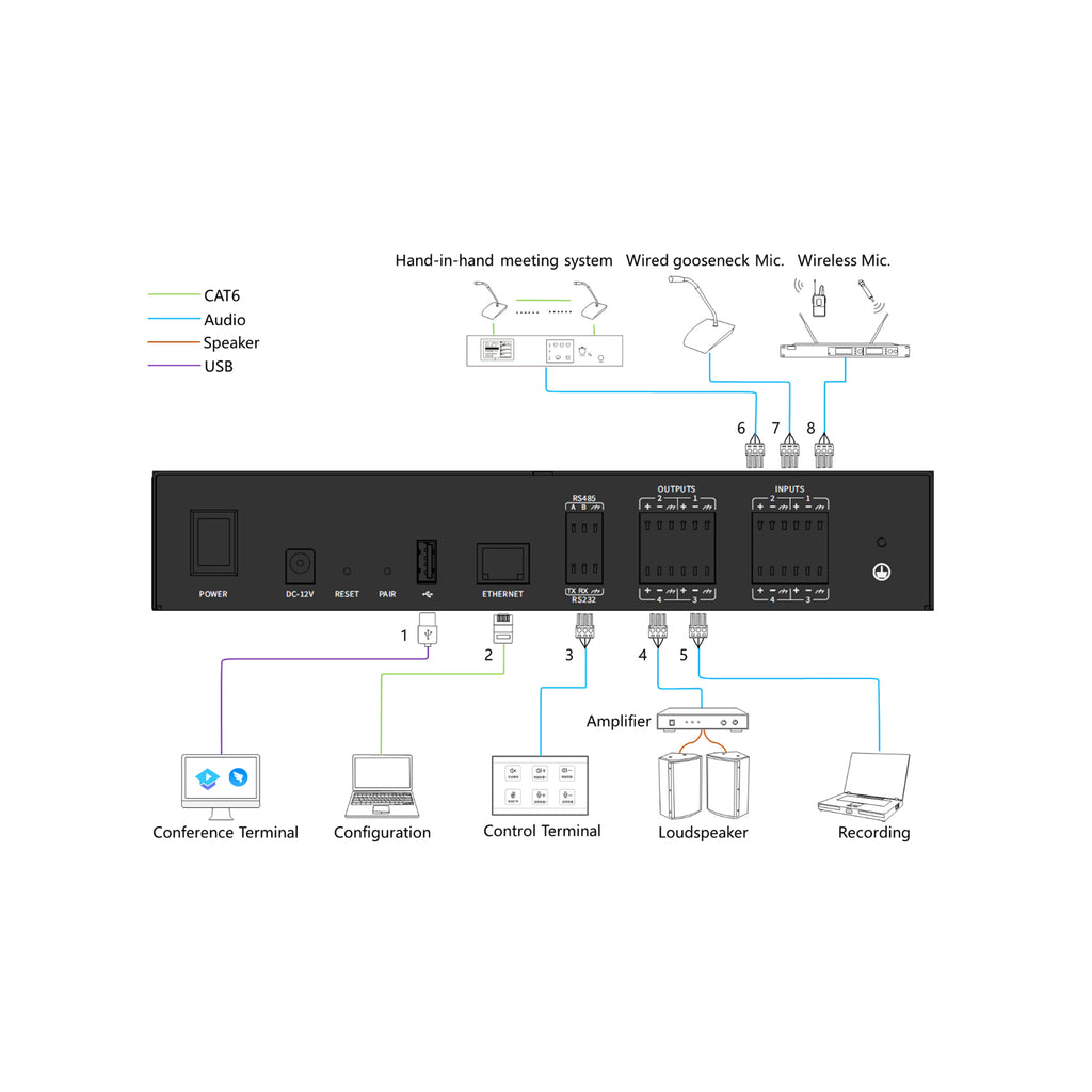- Signal processing functions including equalizer, filter, expander, noise gate, limiter, delay, ducker,…